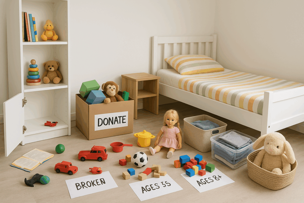 Сломанные, порванные и небезопасные предметы должны отправиться в мусор. Это уменьшает объем вещей и делает пространство безопаснее.