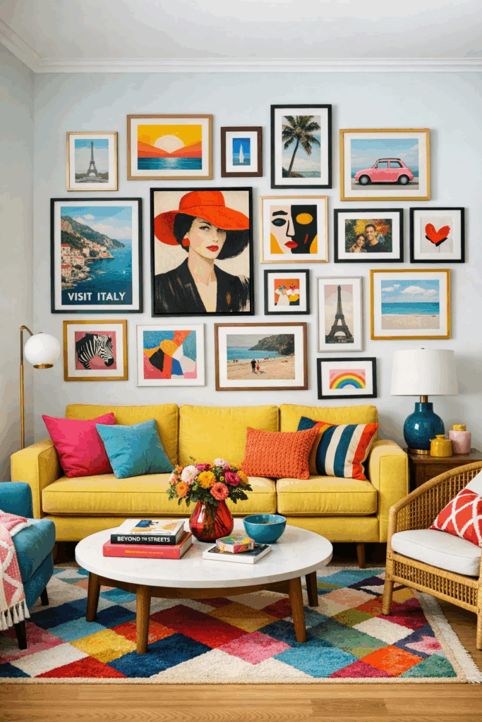 Настенная галерея — отличный способ привнести индивидуальность. Комбинируйте картины, постеры, фотографии, создавайте композиции из рамок разного размера и цвета. Это не только украшение, но и способ выразить характер пространства.
