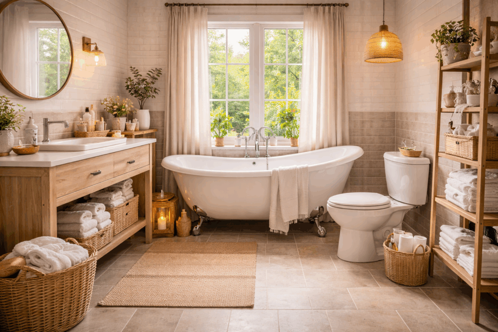 Декор и аксессуары способны полностью изменить настроение помещения. Живые растения, деревянные элементы, аккуратно подобранный текстиль и неброские аксессуары добавляют тепла и создают ощущение домашнего уюта даже в небольшом санузле.