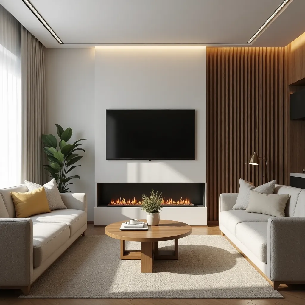 Каминная зона всегда ассоциируется с теплом и домашним уютом. В условиях городской квартиры классический камин можно заменить биокамином, не требующим дымохода, или декоративным фальшкамином. Даже в таком формате он становится визуальным центром гостиной и создает атмосферу спокойствия и уединения.
